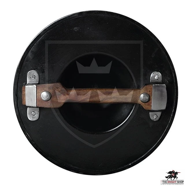 This is a reproduction of a buckler designed with a reinforced handle. The original was found in Dordrecht. Due to the thickness of the piece, it can be used in battle.