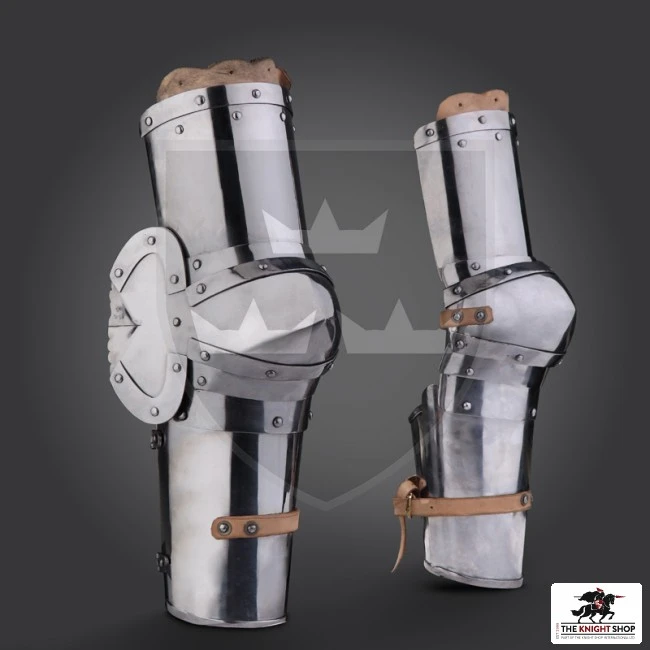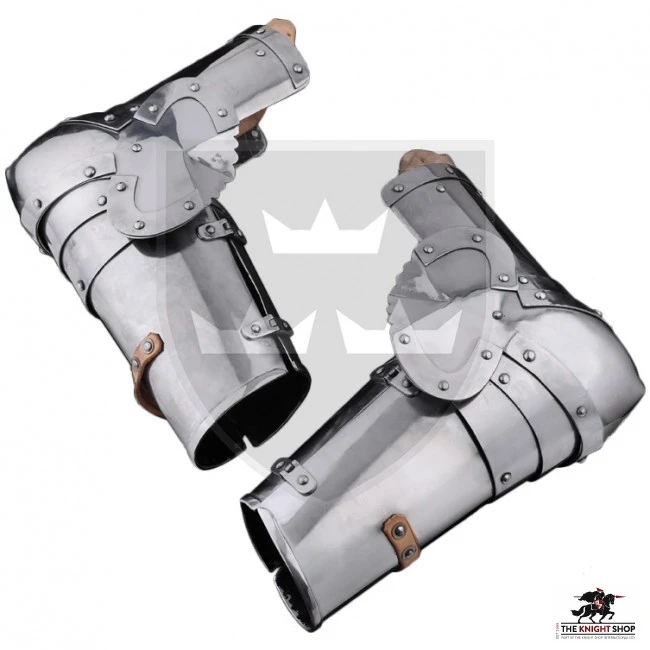 Towards the end of the 14th century, arm armour evolved from reinforced leather armour into contoured plate armour that fully enclosed the arms and elbows. This offered much better protection at the cost of a little less mobility. Our Churburg Arm Armour is a replica of some in Churburg Castle which is dated to 14th Century Italy. It is crafted from 16 gauge steel making it great for re-enactment and is fastened by buckled leather straps.Â