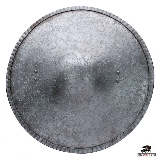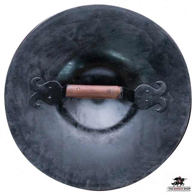 This slightly larger buckler shield is perfect for just about any battle scenario. Hand-forged of steel, the shield has a 6” soft-raised boss in the center for deflecting any blade. The face has been given a decorative acid bath, which gives the shield a gorgeous unique finish. The sturdy steel handle has been covered in wood, which gives you a secure grip in just about any type of encounter.