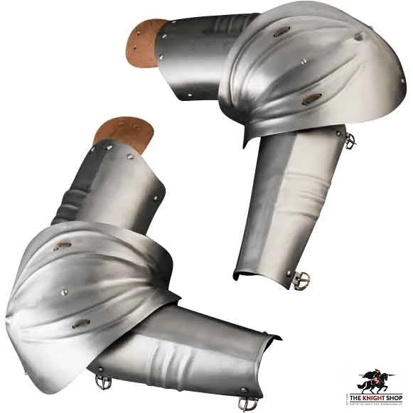 With the 15th Century German Arm Armour protecting your arms, you are sure to look mighty when you take on the enemy in combat. Made from 18 gauge mild steel, these pieces of full arm armour come as a pair. Each arm has three pieces. One piece covers the upper arm, another covers the elbow, and the third covers the forearm.