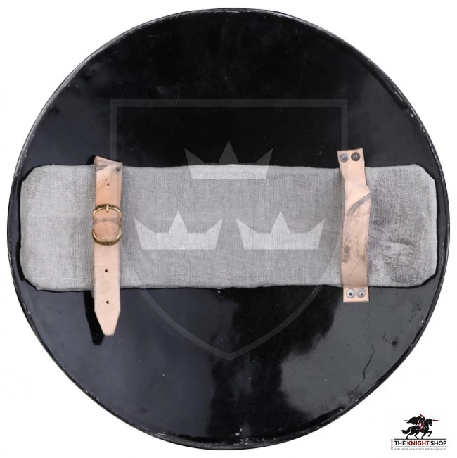 Our Round Rotella Shield is hand beaten from 16 gauge steel – making it both tough and durable enough for re-enactment and HEMA. You can still see the traces of the smith’s hammer marks on the surface. It features 2 adjustable leather straps and cushioning pad for the arm to soak up impact.