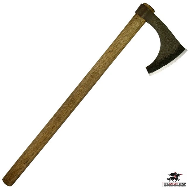 Cutting tools of the Vikings commonly doubled as weapons of war when these famed raiders sailed on pillaging forays. Their axes were certainly top of the list and came to symbolise the terror spread among their foes. Varying greatly in size, from small throwing axes to the mighty Danish Axe, these were the most commonly used weapons of these Nordic warriors. Our Bearded Axe (XH1073NT) is a typical pattern, capable of cleaving helms or armour with impunity.