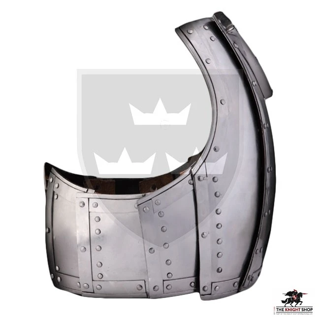 It is constructed from articulated 16 gauge steel plates that are riveted to leather for durability and strength and features leather buckled straps at the back. This item is popular with reenactors and is great for re-enactment.