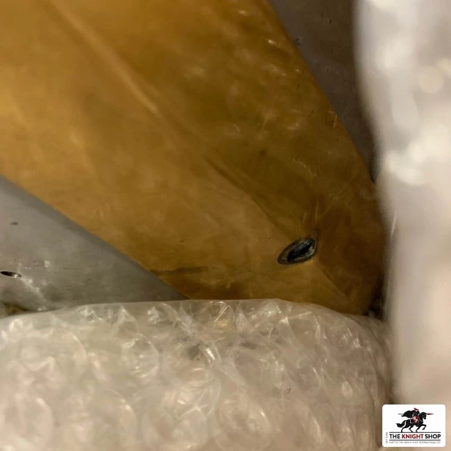 Our Great Helm is hand crafted from polished steel and features and adjustable leather “spider” liner and large brass decorative cross. It is constructed from 18 gauge steel and not recommended for re-enactment.