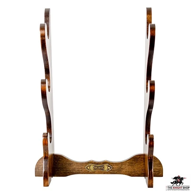 Our Pistol Stands are the perfect way to display your flintlock pistols – but are also suitable for displaying katanas. They are hand made in Italy and are crafted from wood with a varnished finish. They feature a small brass plaque with the words “SEC XVIII” meaning 18th Century, the same period as the pistols they are designed to display (this will also work for many katanas). This plaque is held in place by 2 small pins and can be easily removed if necessary. The stand is supplied in 3 parts and slots together with ease.