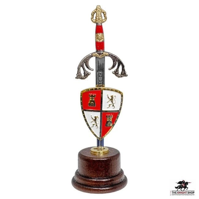 Our El Cid letter opener and shield honours the Castilian knight Rodrigo Diaz de Vivar. The Castilian knight Rodrigo Diaz de Vivar, known as “El Cid Campeador” in the 11th century, was the prototype of the knight and loyal vassal who took part with his king Alphonse VI in the conquest of Toledo. Subsequently, he conquered the city, and kingdom of Valencia from the Arabians.