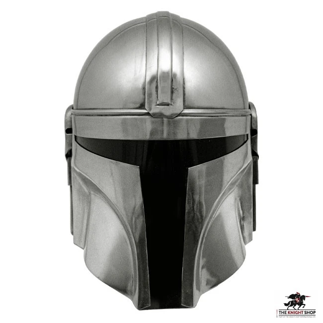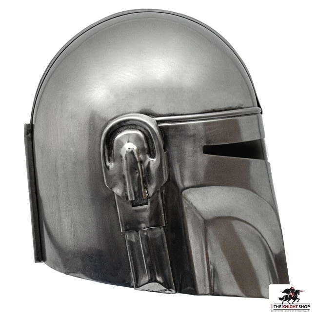 Our Galactic Commando Helmet is inspired by helmets worn by Mandalorian warriors in the Star Wars sagas. It shares many of the same design features as the prop helmets and as such is instantly recognisable to any fans of the movies/series. It is hand-crafted from 18 gauge steel and features an adjustable leather spider liner. The tinted visor is made from a tough transparent plastic (please note, the tint is more of a dark smoke than solid black, so your face can be visible depending on the lighting). Combine with a helmet stand for an amazing showpiece or wear it for cosplay, it’s perfect for both!