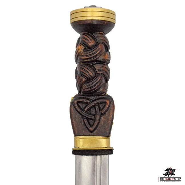 This beautifully made Officer Dirk has been styled on surviving historical specimens of the late 18th century. The natural finish hardwood hilt has been hand carved with vigorous Celtic knot work much in the style of the traditional early 18th century fighting dirks. A brass metal pommel cap and ferrule protect the wooden hilt against damage. The Scabbard is made in hardwood and covered in brown leather and brass detailing.