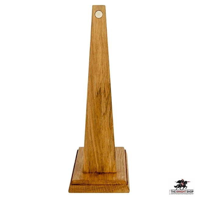 Our Magnetic Sword Stand is hand-crafted from oak and stained with a honey coloured finish. It features a sturdy base with a small socket to locate the tip of the blade and a strong magnet to hold the sword firmly in place.