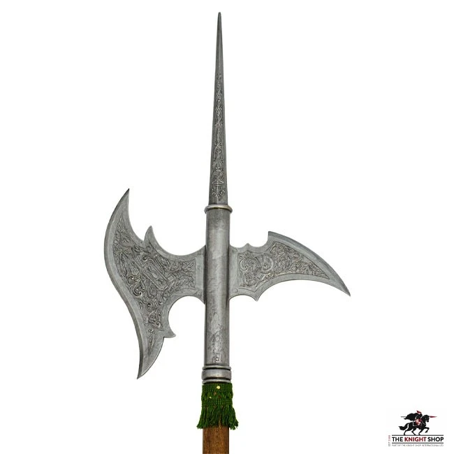 The Halberd or Pike has been a staple in medieval warfare for years. The combined functions of an axe and a spear make this a formidable piece of battle hardware.