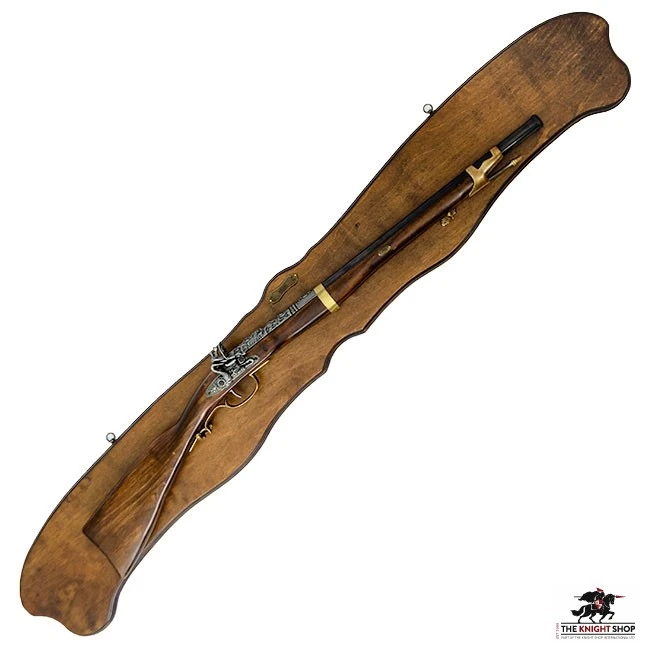 Our Musket/Rifle Display Plaques are the perfect way to display your historical firearms. They are hand made in Italy and are crafted from wood with a varnished finish. They feature a small brass plaque with the words “SEC XVIII” meaning 18th Century, the same period as the firearms they are designed to display. This plaque is held in place by 2 small pins and can be easily removed if necessary. The antiqued brass hooks are supplied with fixing pins and can be positioned anywhere on the plaque.