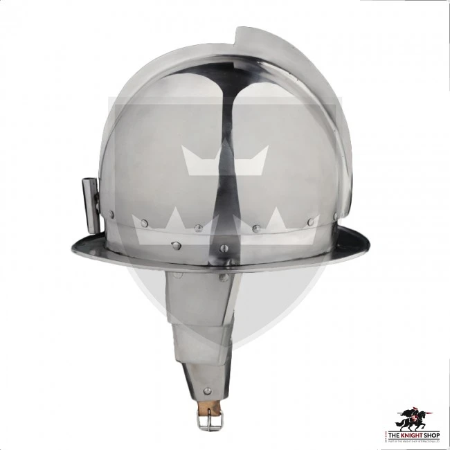 This helmet is constructed from 16 gauge steel making it great for English Civil War era re-enactment. Leather chin strap included.