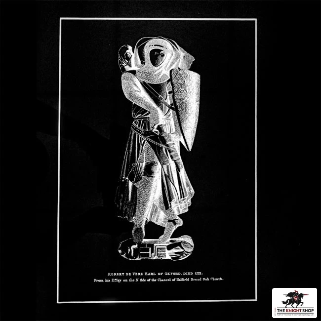 Robert de Vere, son of Aubrey de Vere, Earl of Oxford, succeeded his brother Aubrey in the honours and possessions of his family in 1214. He was one of the principal Barons who took up arms against King John, for which he was excommunicated by Pope Innocent the Third. On the accession of Henry the Third, he was received into favour, and became a Judge in the King’s Courts. He married Isabella, the sister, and inheritrix of Hugh de Bolebec, by whom he had a son and heir, Hugh.