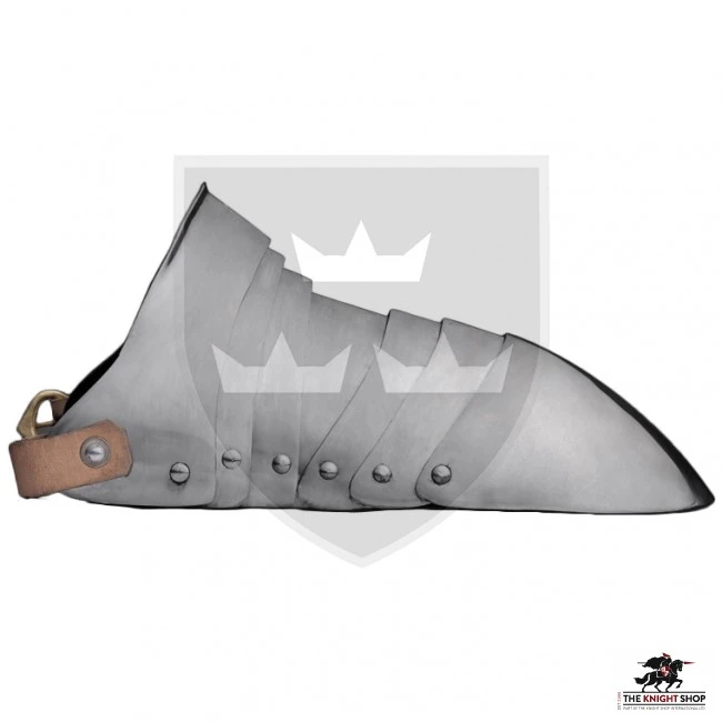 Our Sabatons are constructed from 16 gauge steel making them great for re-enactment. They are fully articulated allowing the foot to flex and are attached with a leather strap.Â