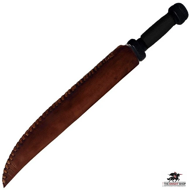 Our Saxon & Viking Scramasax features a forged high carbon steel blade with blackened steel Saxon styled fittings. The wire-bound grip is both decorative and functional. This well-made seax comes complete with a laced leather sheath.Â