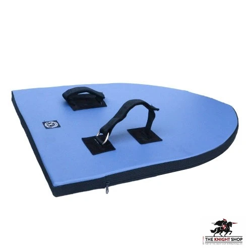 The heater foam shield was designed for HEMA training with other foam simulators. Its appearance is reminiscent of medieval heater shields.
