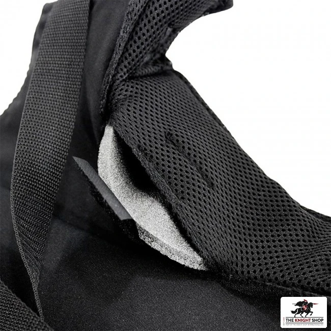 This product is covered with materials of 800N puncture resistance. The collar has a bladecatcher. Adjustable stripes on the back are fastened with four buckles, providing proper fitting to the body. Inner layer of the plastron is made from a 3D mesh. On the bottom you will find a special pocket with cushioning foam. You can easily remove it, depending on individual needs.
