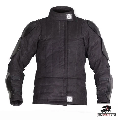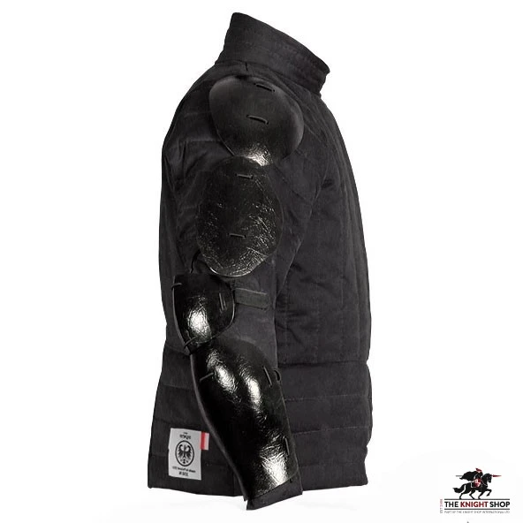 SPES resigned from the traditional fastening way with leather thongs. Now the jacket has zipper and Velcro tapes that help you put on the gambeson much faster.