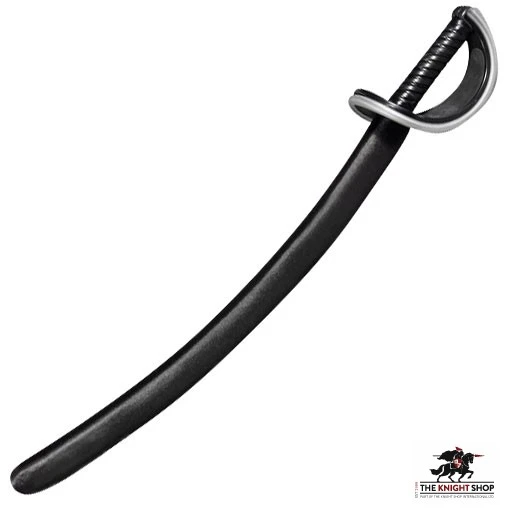 It is a saber made of black, durable materials. The blade is smooth and the handle is twisted.