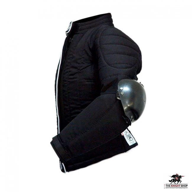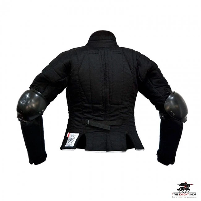 This HEMA jacket has a bladecatcher. The jacket is fastened with two zippers. A strap on the back at the waist level and slits at the bottom edge help with adjusting this equipment to female body shape.