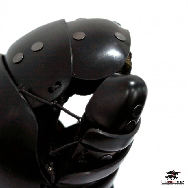 Our HEMA gloves are completely black. They cover all fingers, especially the thumb. The inner sides are covered with black leather. The cuff has segments made of black eco-leather. The top of hands, as in other Lobsters, are covered with plastic faulds.