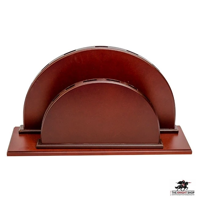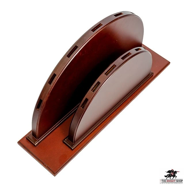 Our floor display stand is designed to display 13 swords. It is primarily manufactured as a merchandising stand but is perfect for displaying your collection at home. It features 13 x sockets of various sizes designed to display a multitude of different styles of sword. It is of all Wooden construction.
