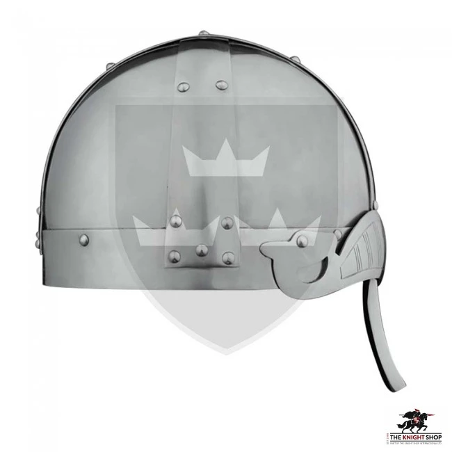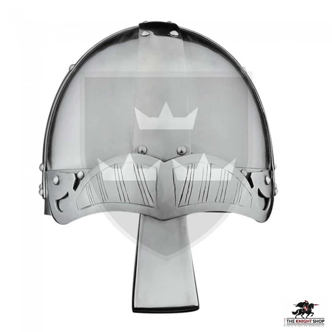This Spangenhelm cabasset with reinforced straps is inspired by those used by the Scandinavian people, specifically by the well-known Vikings. It stands out for its stylized design in the form of eyebrows or inverted Drakkar, which gives it a great showiness while protecting the forehead.