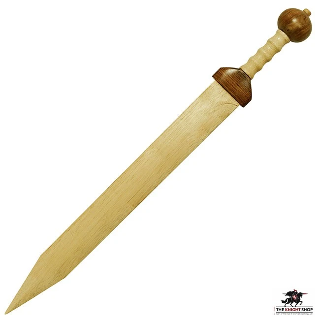 Our training gladius is based on the classic Roman gladius and made entirely of hardwood. The pommel and guard are darker for visual interest. If you plan to use this wooden gladius as a training sword, be careful: the blade is made of wood but it does have a sharp point.